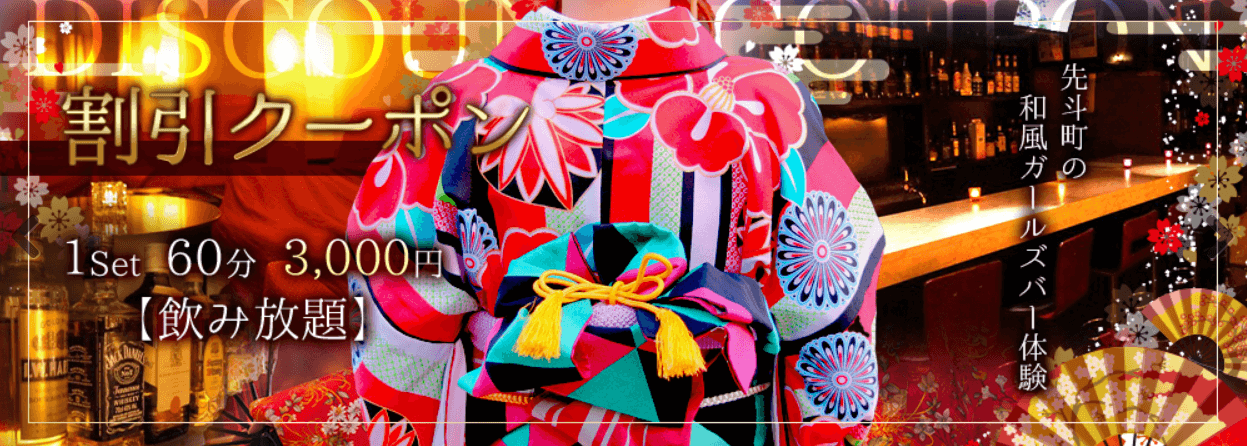 Girls Bar Co. From ¥3,500 for 60 minutes 19:00 to LAST Kimono VISA/JCB/Mastercard/American Express