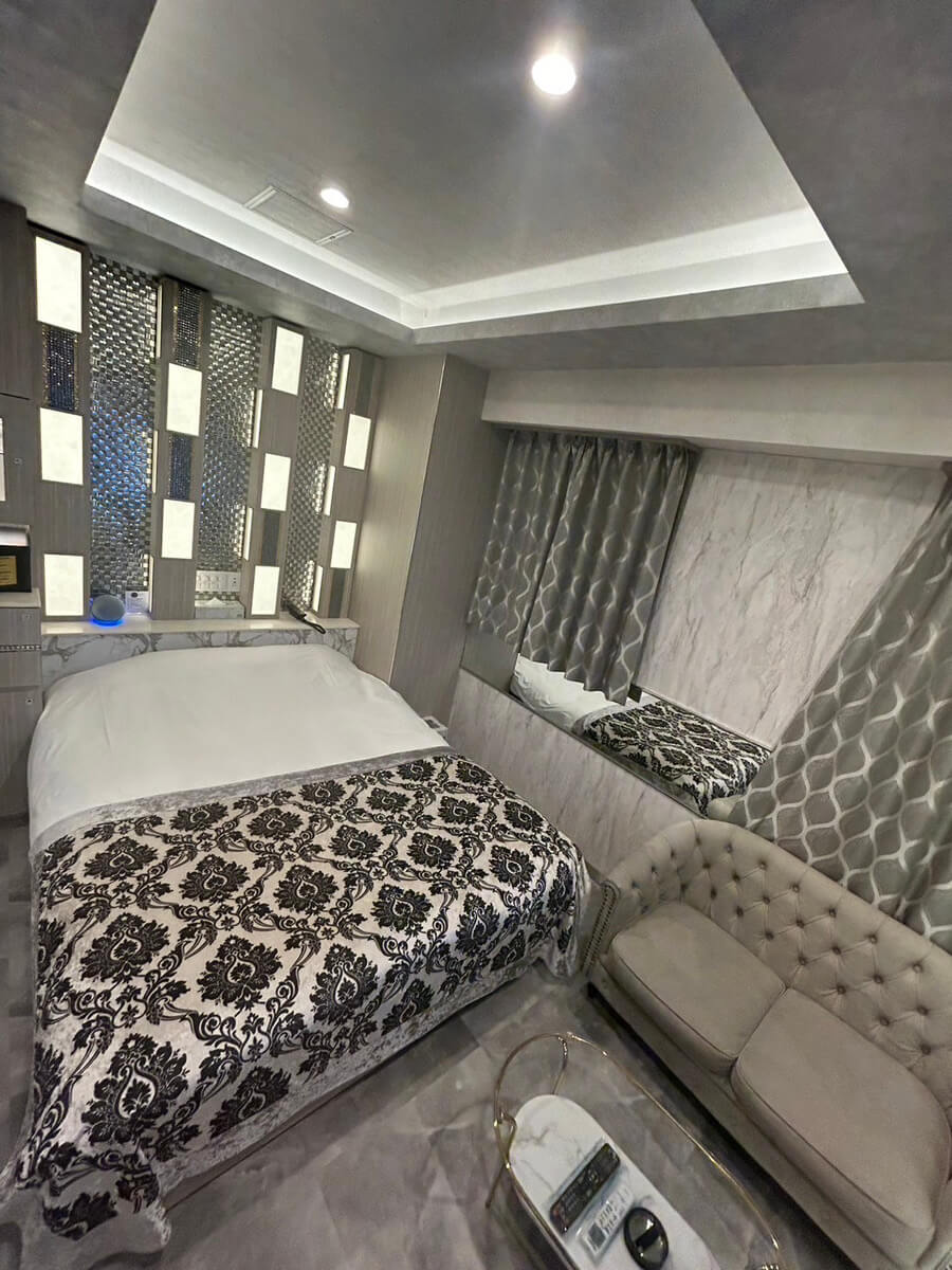 *The room is unified with white and gray. It has a luxurious feel that you wouldn’t expect from a love hotel in Shibuya.