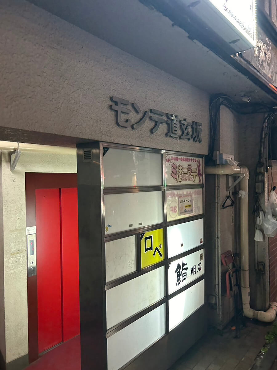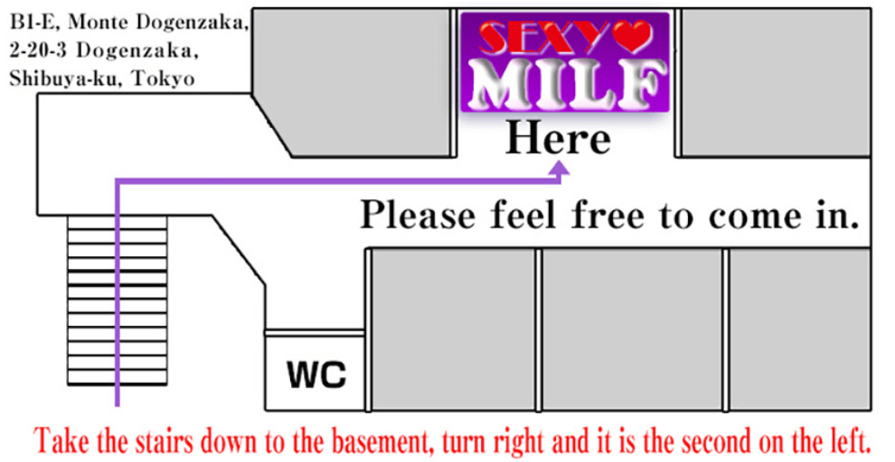 With Lawson in front of you, two doors to the left is a building called “Monte Dogenzaka”. According to the official site, the reception of Tokyo Sexy Milf is in the basement of this building.
