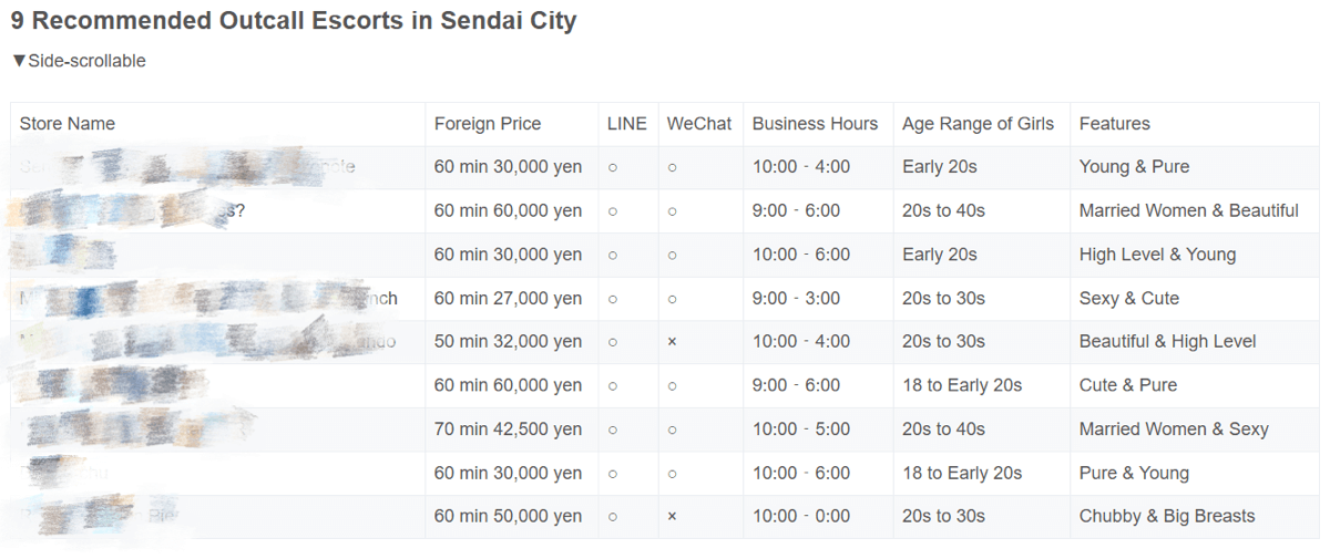 Foreigners who have experienced areas such as Tokyo and Osaka often come to Sendai next in search of rich nature and unique gourmet food. On the other hand, compared to Tokyo and other urban areas, there are fewer sex establishments that accept foreigners. This article introduces 9 foreigner-friendly outcall escorts. Each store’s LINE account or WeChat account, official website, and foreigner rates are also introduced, so those who want to enjoy a night out in Sendai should definitely refer to them.