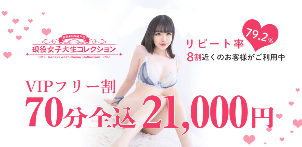 “Current Female College Student Collection” is an escort service with approximately 140 current female college students aged 18 to 20s.The rate is 30,000 yen for 60 minutes, which is pretty much the going rate.